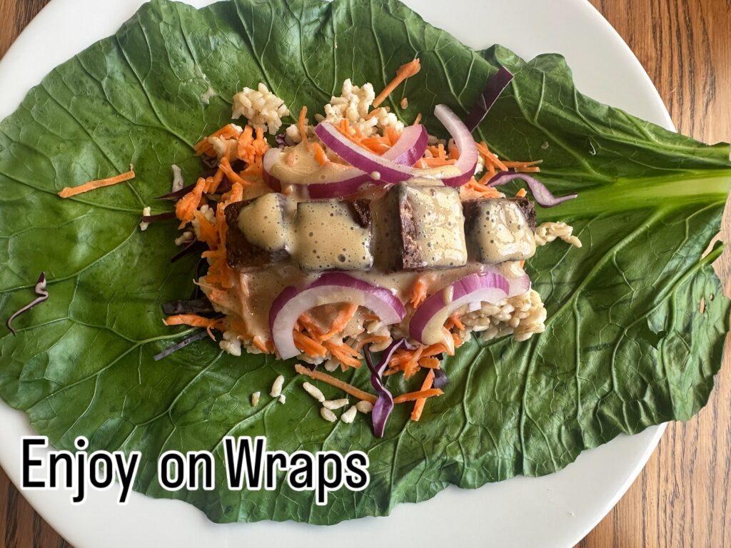 Try using the Creamy Ginger Miso Dressing or the Sunshine Lemon Poppy Seed Dressing with tofu in a salad or in a wrap.