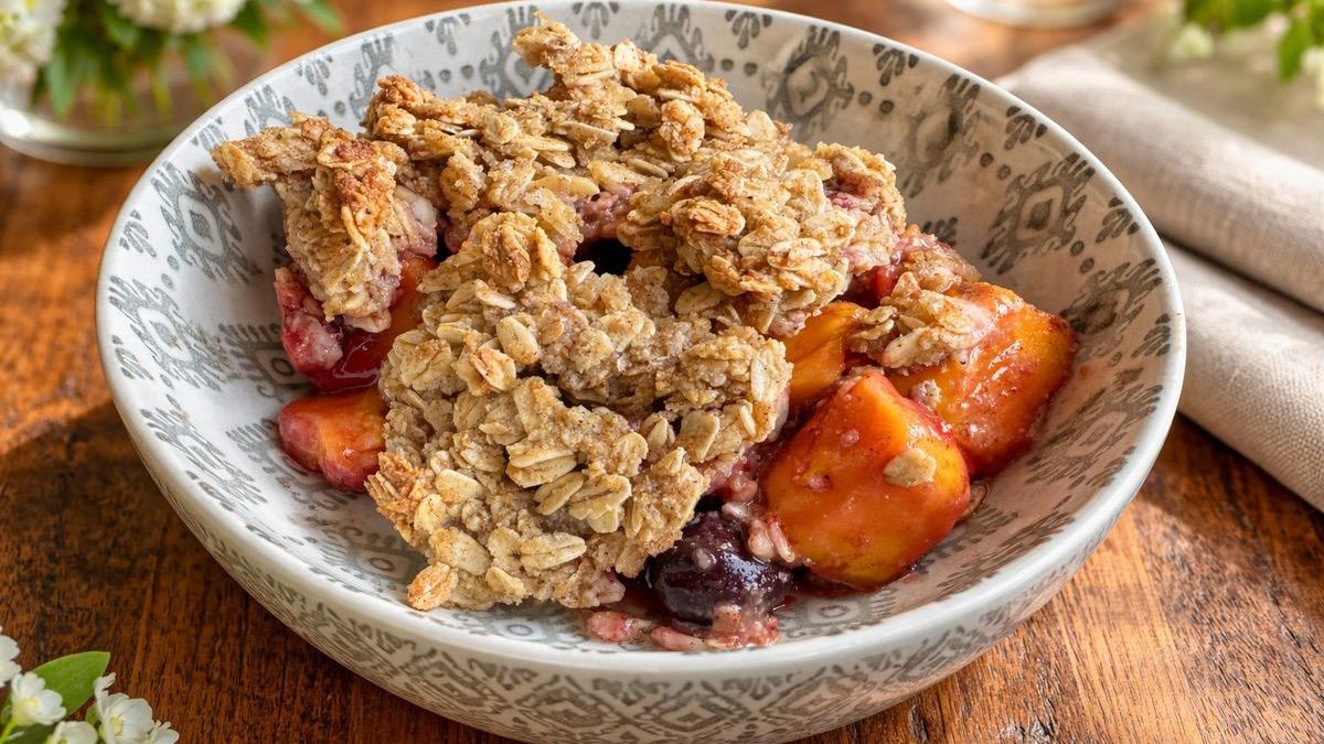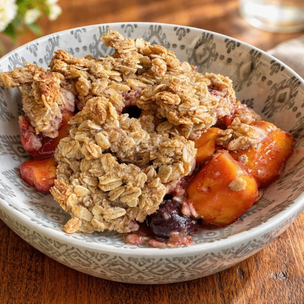 The natural sweetness from maple syrup or date syrup avoids refined sugar, and applesauce keeps the topping moist without the need for oil. Altogether, this dessert is a nutrient-dense alternative to traditional crisps, offering both flavor and function in every bite.