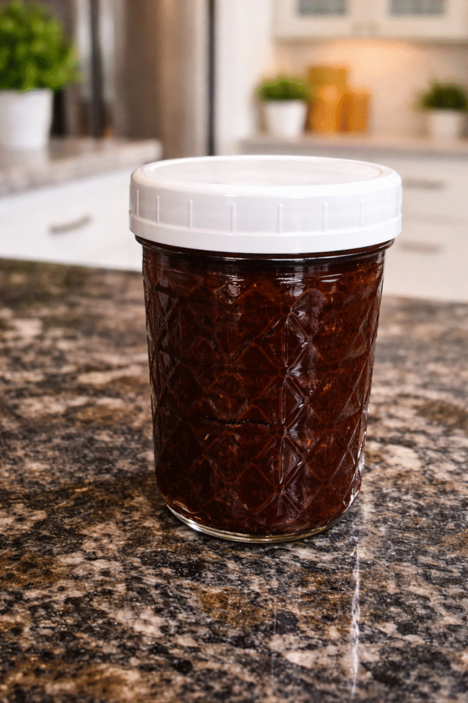 The small Ball Jelly Jars work well for homemade condiments like this. I prefer the Plastic Reusable Storage Caps to the metal rings and lids that are actually used for canning. These can be purchased on my Amazon Affiliate Recommendation Page or from Target or stores that carry houseware items.